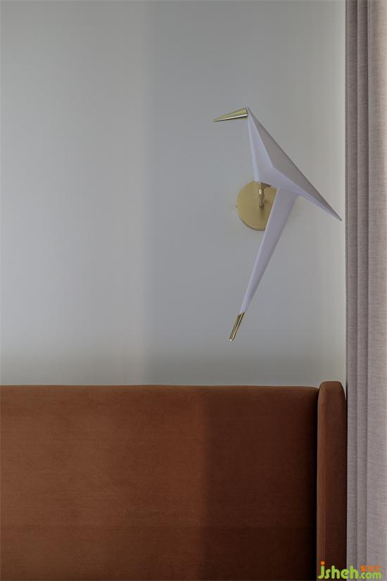 床头灯的选择别具匠心,线条一直一曲,颜色一黑一白,家装设计造型一横一竖,是对立与统一的生活哲学。