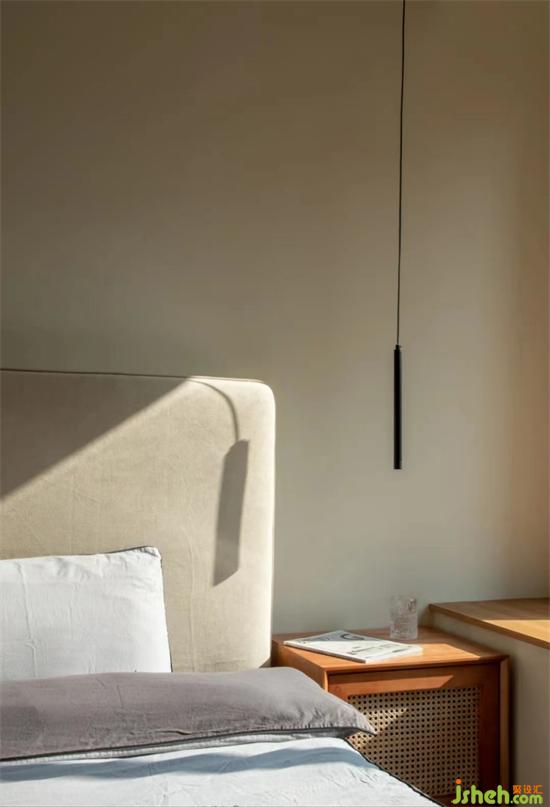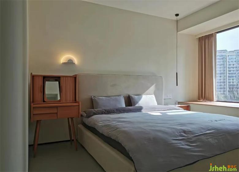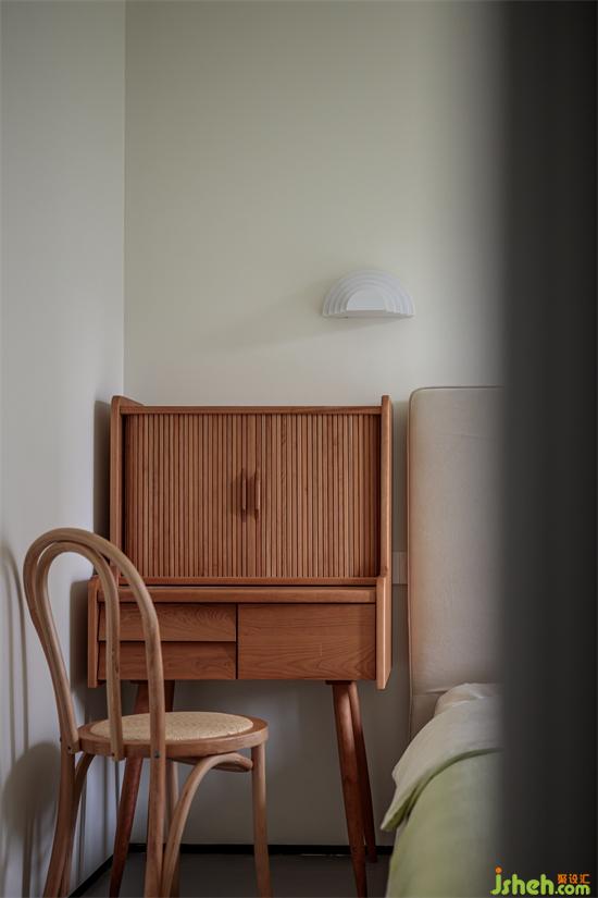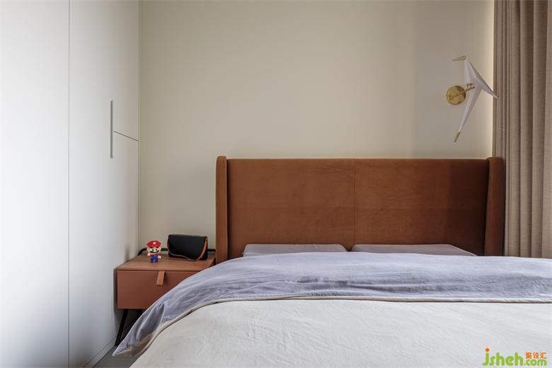 一边是床头柜,一边是梳妆柜,打破传统的对称布局,是多元审美的诠释与践行。