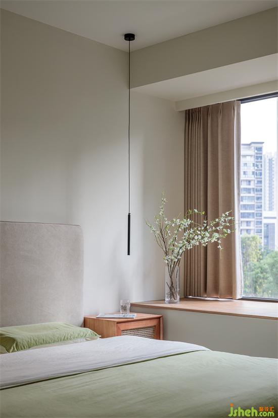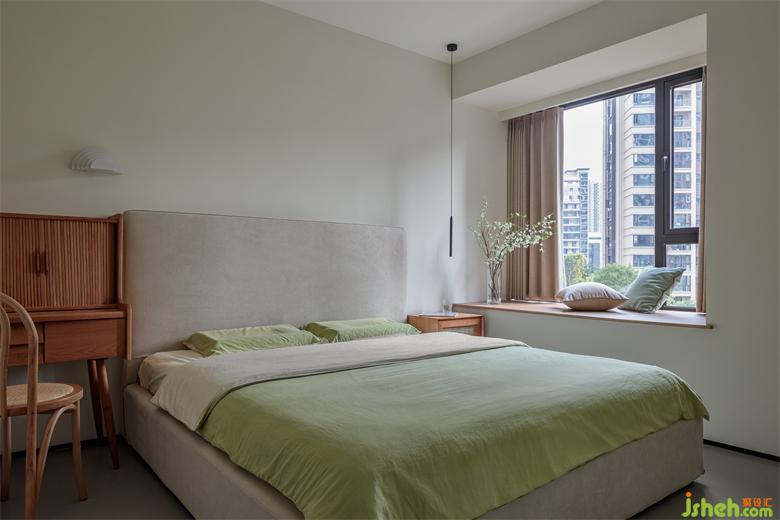 家装设计精巧,氛围温馨,低饱和色让整个卧室空间呈现出一种安然静谧之感。