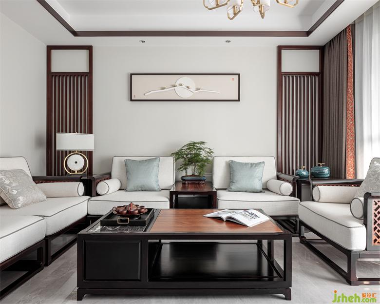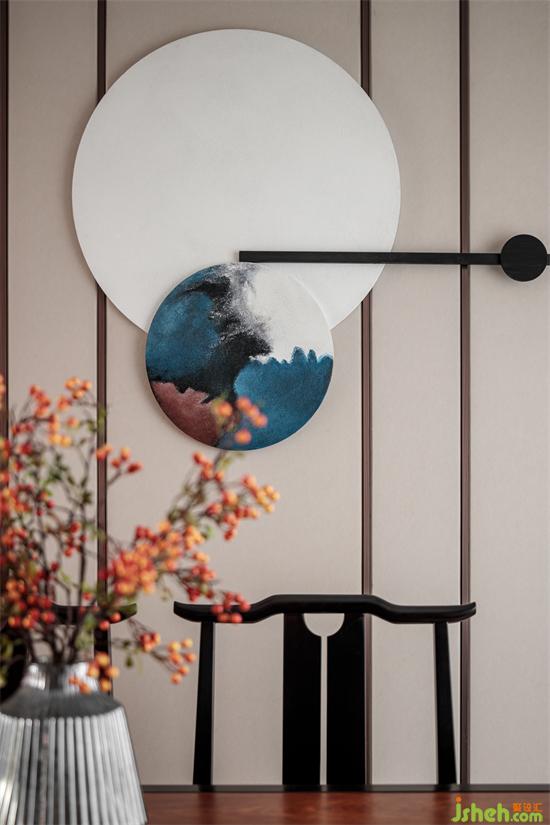 墙面、顶面线条方正,空间布局对称平和,体现出儒家传统思想中的“中庸之道”。家装设计色彩搭配一深一浅,暗合道家“太极阴阳”之法。二者相得益彰,浑然一体。