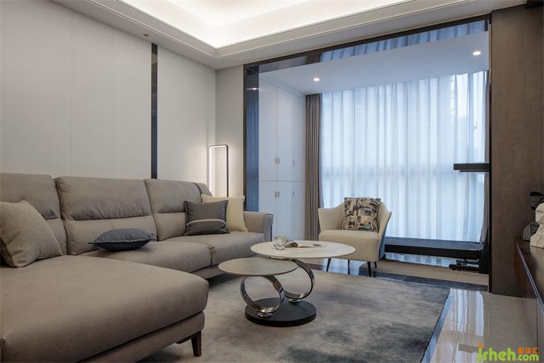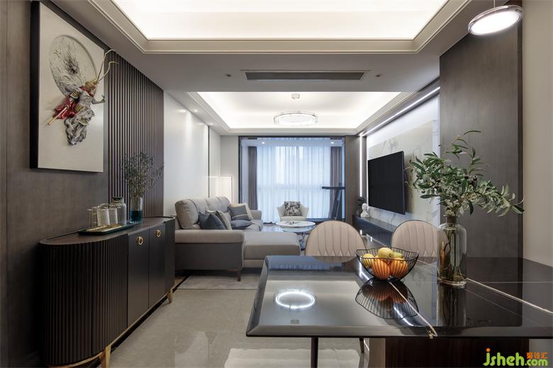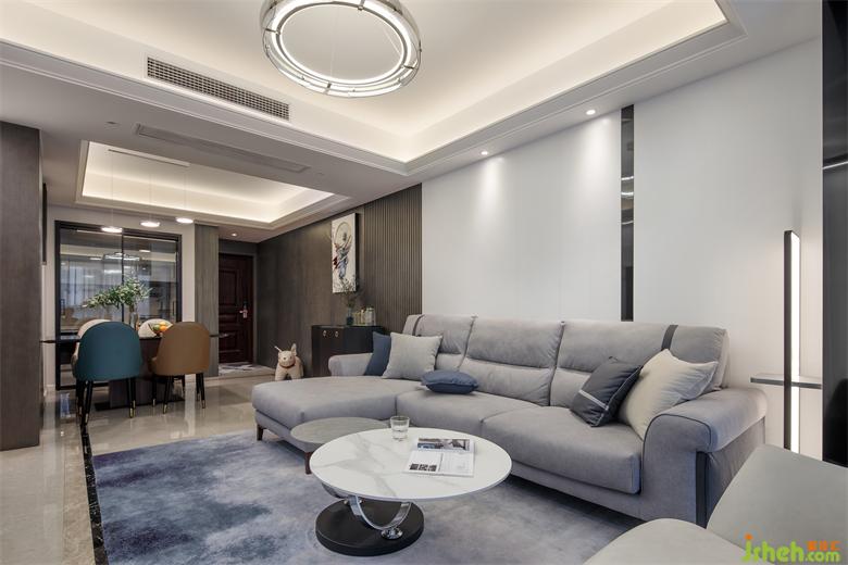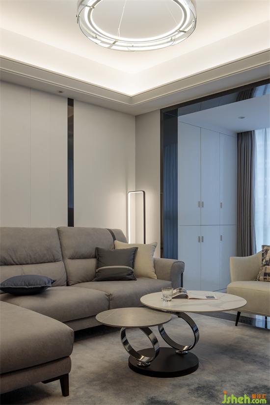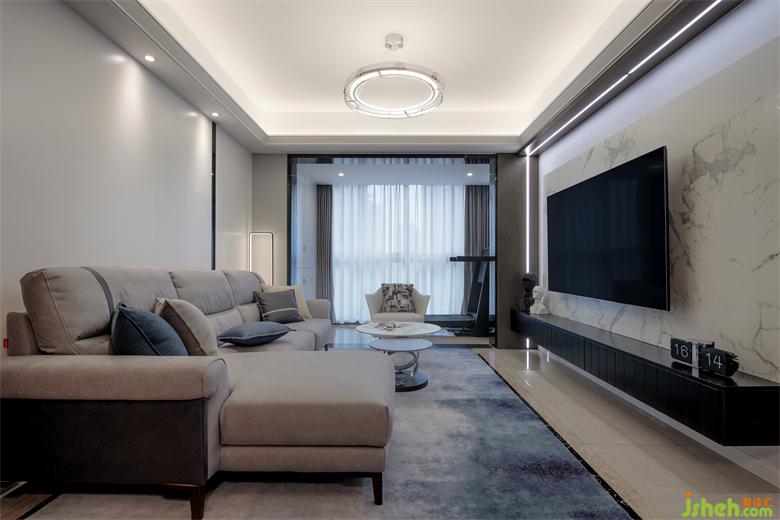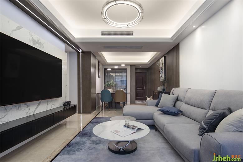 客厅主灯简洁明了,家装设计柔光灯带设计增加了空间的温馨感。