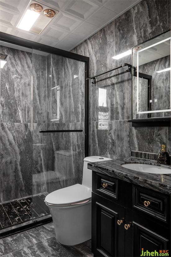卫生间增加了玻璃隔断,家装设计不影响视觉空间,同时也做到了干湿分离。