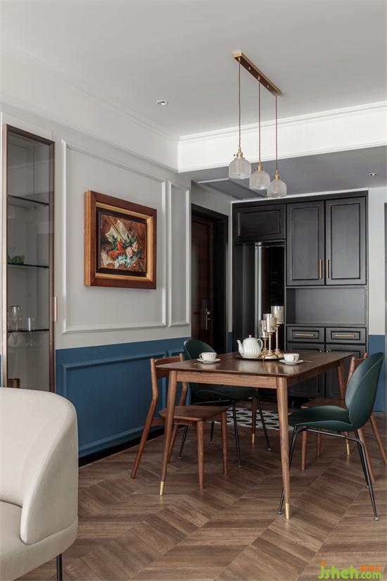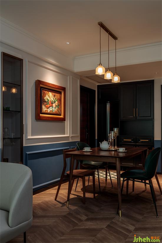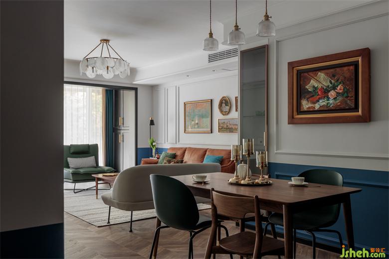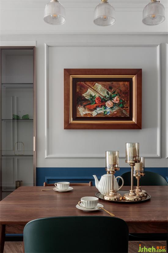 现代北欧桌椅搭配古典油画,家装设计几何线条增加复古庄重感。简而不繁,只需寥寥几笔。