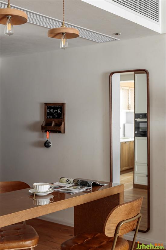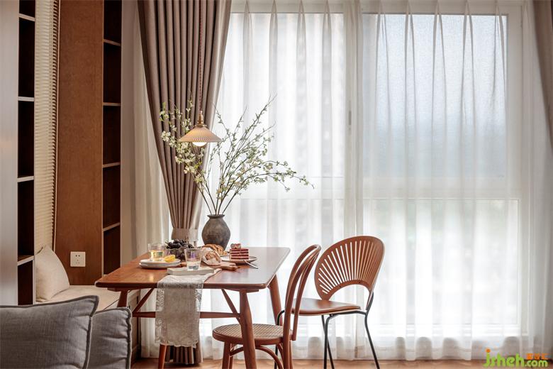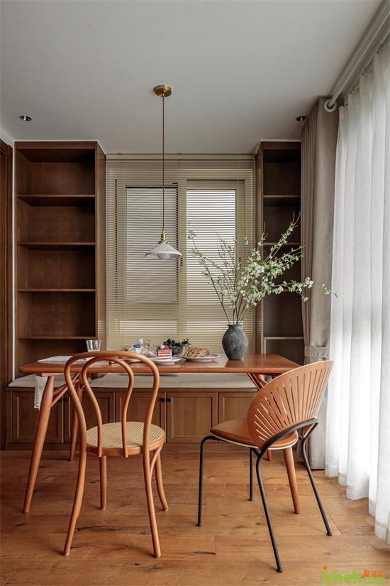并用原有的阳台打造了卡座、餐边柜等功能性设施。好友到访时,可在这里用餐、闲聊、喝咖啡,玩狼人杀。家装设计用餐时,既可享受美食的诱惑,又能坐拥窗外的风景,实在是妙不可言。