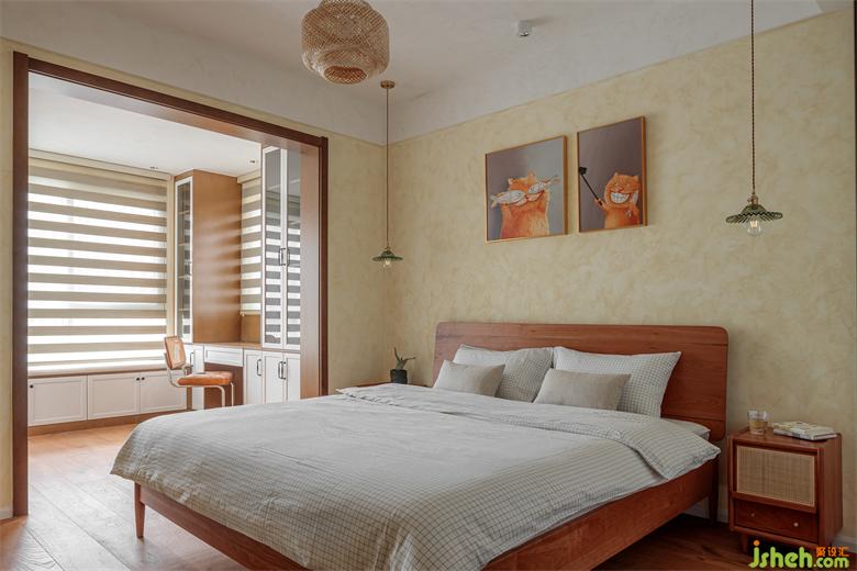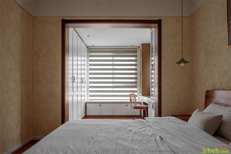 主卧用简而巧,让卧室兼具了空间的明阔感和实用性。对于传统的“衣柜靠着床”,反其道而行之,把衣柜搬到了阳台,家装设计让“衣柜靠着窗”,极大释放了睡眠空间。