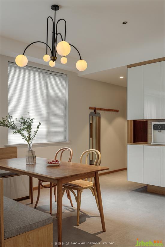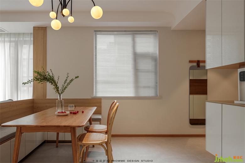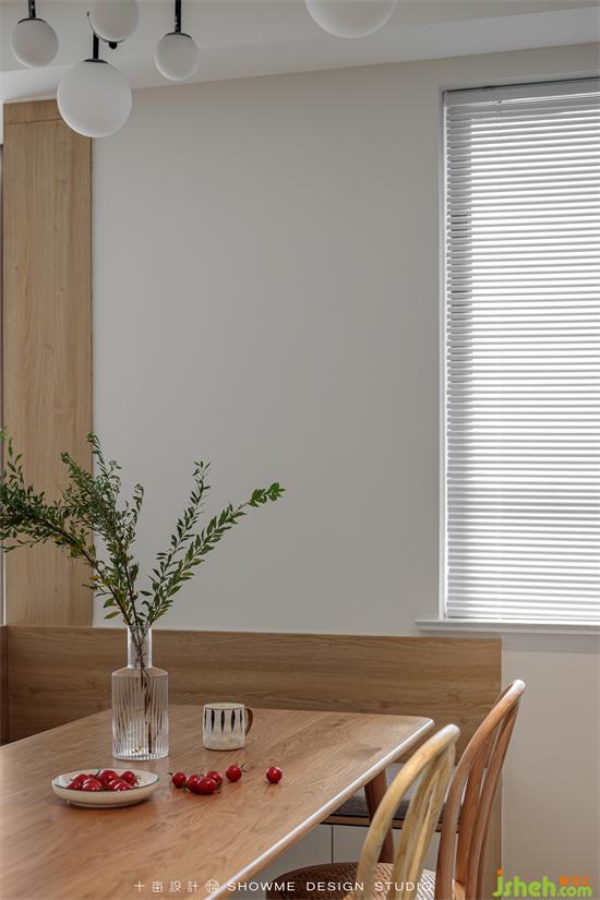 阳光透过百叶窗,均匀地洒进屋里。家装设计清新的白色和温暖的木色搭配在一起,所有的烦躁不安在这一刻被治愈,空气也变得宁静温柔起来。