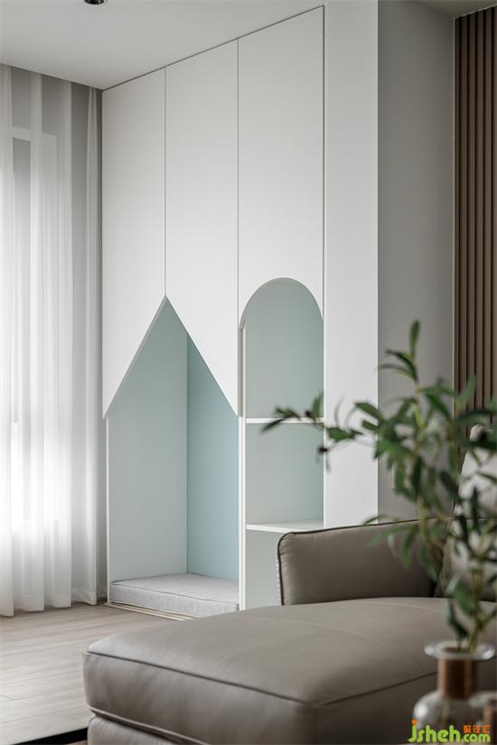 定制阳台储物柜、一方面满足了业主的生活存储需求,同时留给儿童玩乐,亲子活动空间。