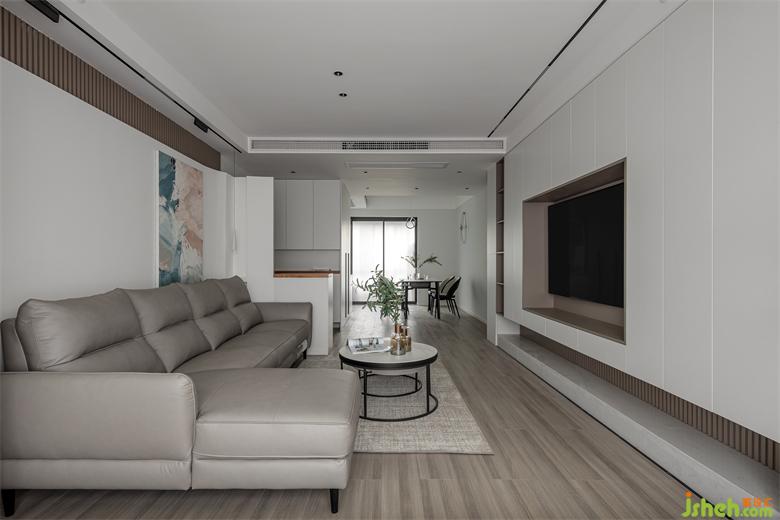 Unified tone control, from the wall to the cabinet, large-area use of pure white, creating a bright, transparent, clean and concise sense of space. At the same time, wood colored lines are inserted in between, the wooden floor is paved, and the hanging painting decoration of stream of consciousness appropriately decorates the sofa background wall, enriching the visual effect and reflecting the sense of spatial hierarchy.