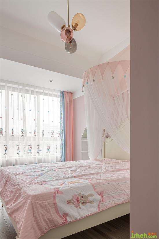 这是富有童真童趣的空间啊!有喜欢的色彩的窗帘,有让人憧憬的帐篷,有童话里的粉色公主床,有可可爱爱的hello kitty,家装设计还有爸爸妈妈那一颗疼你爱你的心,成长在这样环境里的小孩,是满满的幸福啊!