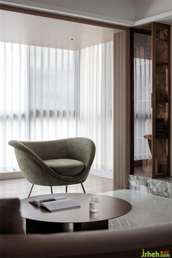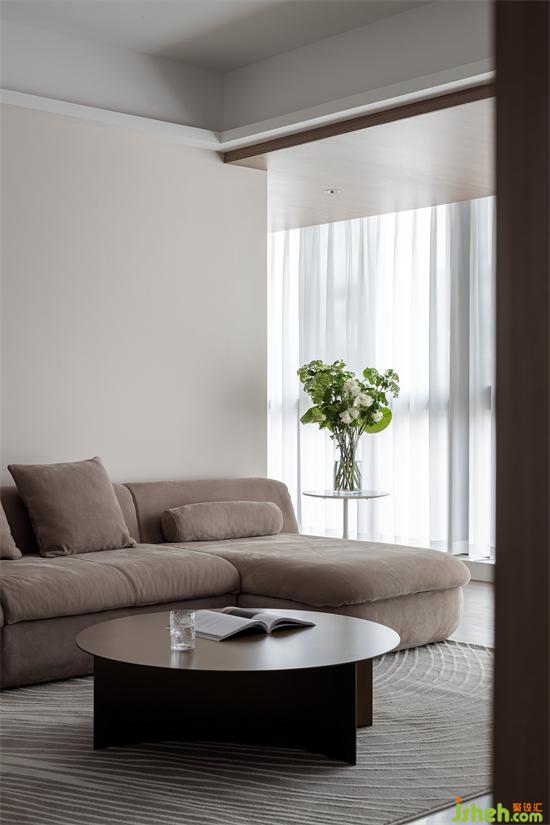 白色的窗纱点缀一盆绿植,清新舒适之感扑面而来,这样的客厅环境若来一杯午后的咖啡,听一首轻柔舒缓的音乐,自是极致的享受。