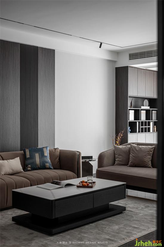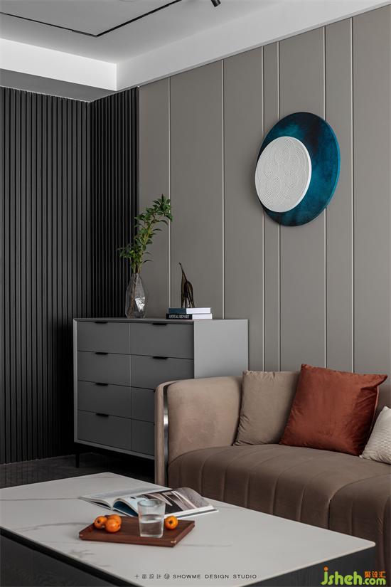 储物柜开合有度,造型独特的摆件提升家的艺术格调,金科王府家装设计让客厅拥有了最全面完整的功能。