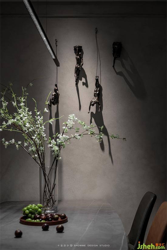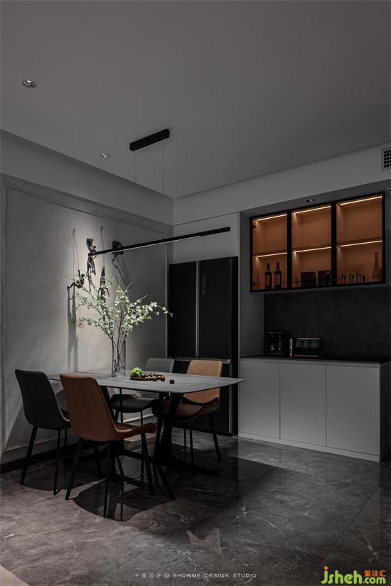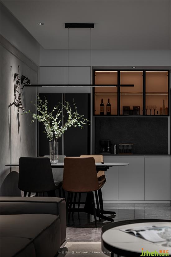 黑色亮面餐桌椅格调满满,内江邦泰天著家装设计搭配餐厅射灯的柔光,用餐空间的氛围可以说拿捏得非常到位。