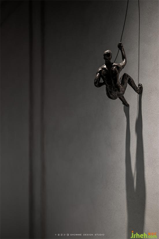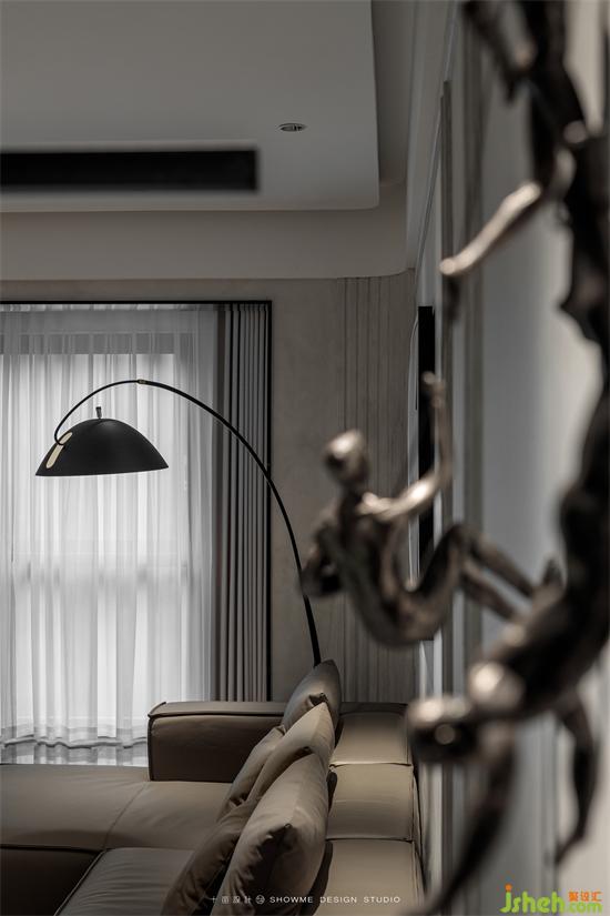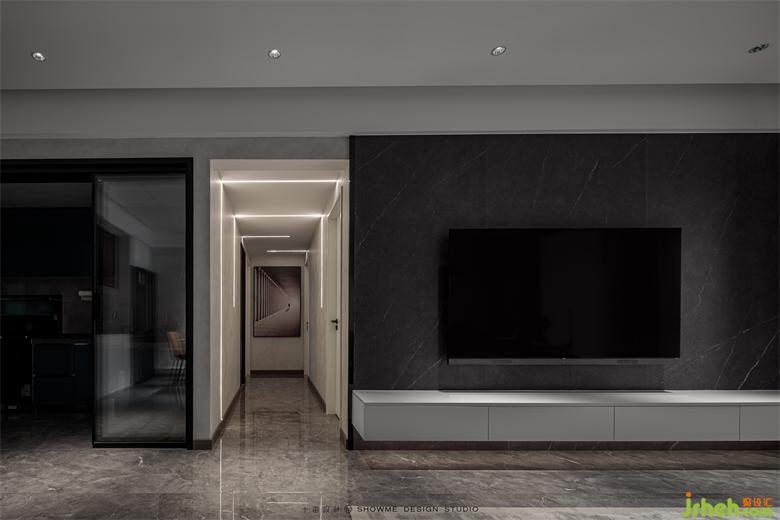 廊道区主色调是白色,与客餐厅区域形成鲜明的对比,寓意时空的变换交替,是从生活区到休息区的过渡,尽头的挂画与走廊呼应,营造出一种意犹未尽之感。