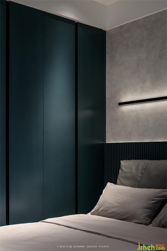 衣柜颜色选用了布里思托蓝,色彩独具一格,内江邦泰天著家装设计呈现出来的效果也充满了惊喜。