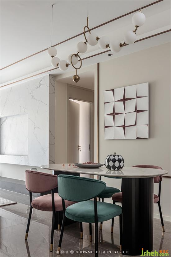 餐厅以简约实用为主,摒弃过度的装饰,在餐桌墙上只需一副凹凸有致的挂画,颐和上院家装设计空间效果立马提升起来。