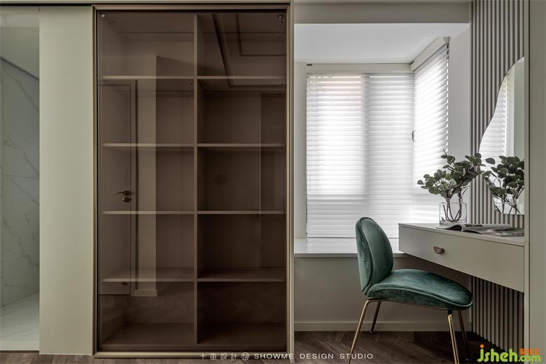 用吊滑门设计,既能保护隐私空间,又能作为衣帽间展示柜的柜门,是一门两用的典范。