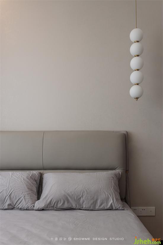 床头柜上墙,让后续空间打扫更为便捷。江山墅家装设计床头灯造型两异,一张扬,一内敛,柔软的床,暖暖的光,这里容纳着所有似水的柔情和幻想。