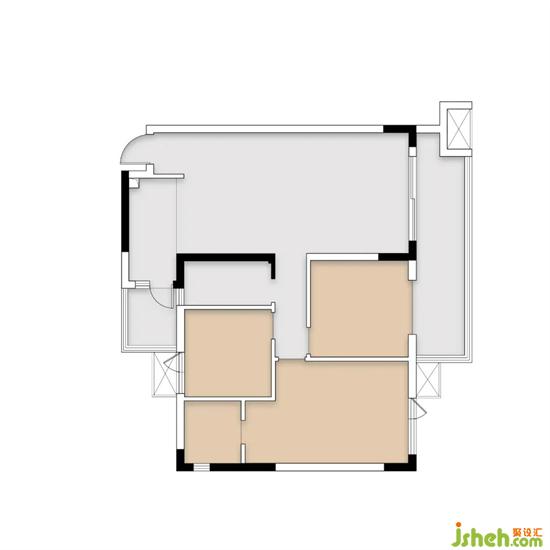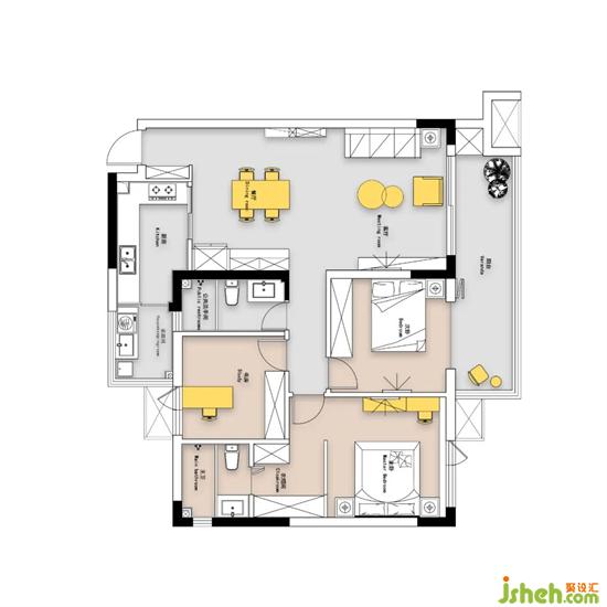 ①房间位三室,基本尊重了原有格局,只在必要处进行了些许改动。