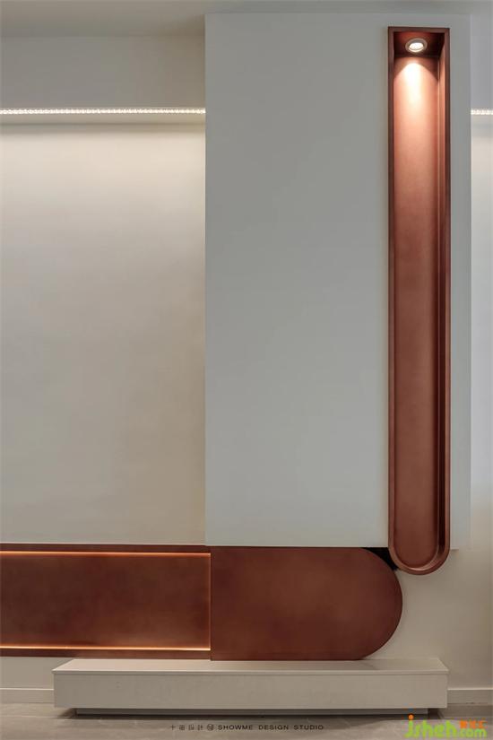 而古铜色的拱形造型,鲜艳欲滴的落地灯,色彩跳动的搭配,邦泰天誉家装设计让整个客厅在平和的观感下暗藏一丝妖娆,增添一丝趣味,是遮掩不住的少女心思。