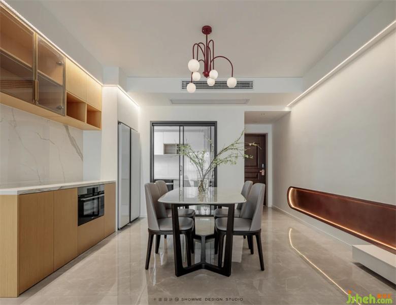 如果食物是最好的解压,那么餐厅无疑是家里最具烟火气的地方。邦泰天誉家装设计精致的容颜在生活的气息里依然从容,各色炊具杯盘有了秩序井然的安身之处,也有了展露身手的舞台。