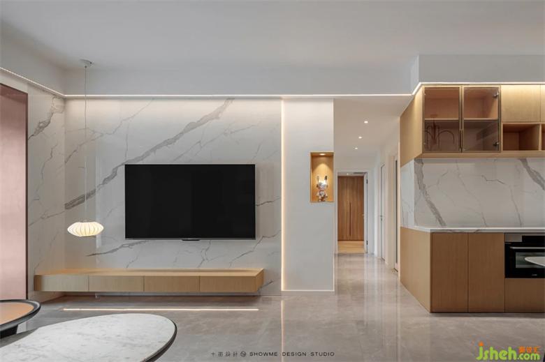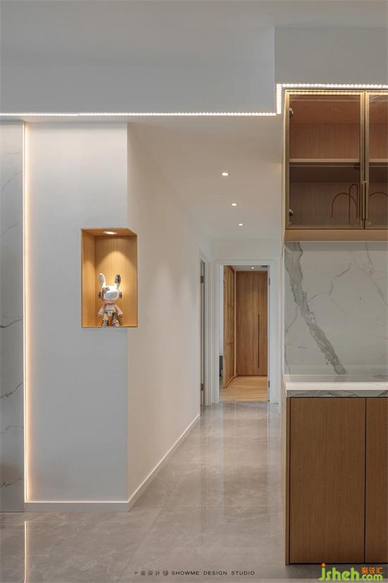 爽净的电视墙倍增明亮,棱角分明的线条,划分出空间的界限,邦泰天誉家装设计转角的镂空置物格更是让人眼前一亮,从踏进家门的那一刻起,心里就倍觉踏实。