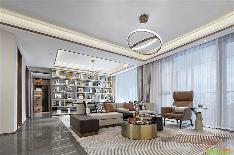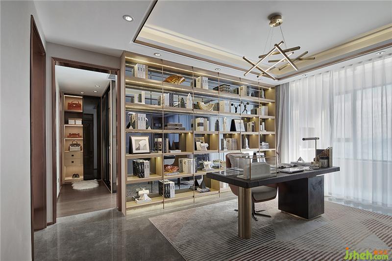 设计书房为开敞式书房,与客厅连贯,增大了住户的感官面积,也满足了日常生活需求,提升住宅品质。样板房设计