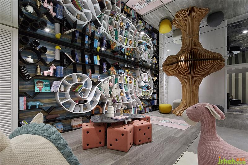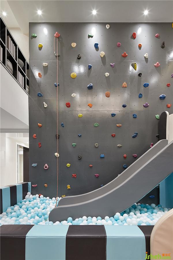 儿童娱乐区提供儿童活动的空间,攀岩墙、蓝白色泡泡球、滑梯创造了丰富多彩的游戏方式,样板房设计以“玩”为天性的活动,让孩子们可以追随自己自由的心灵。