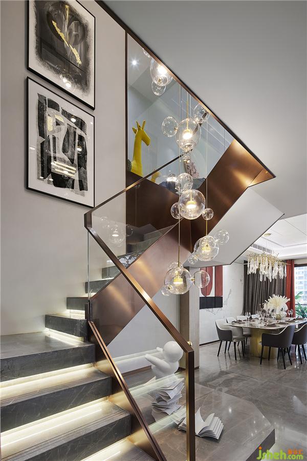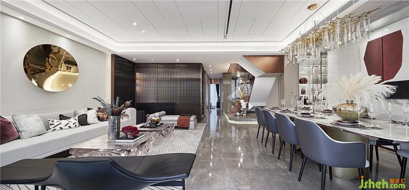 不锈钢金属的明亮精致与石材的刚硬冷冽相互交织,勾勒出独特的空间气质。样板房设计