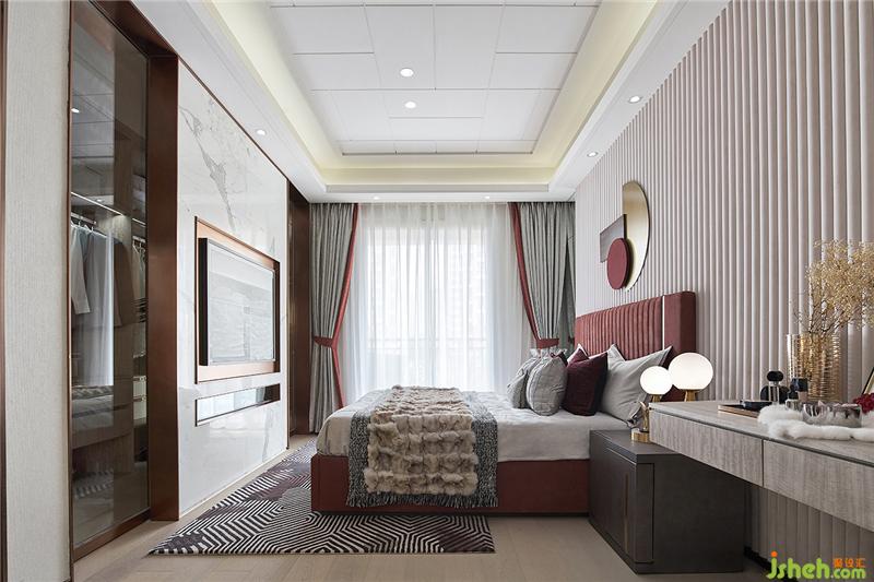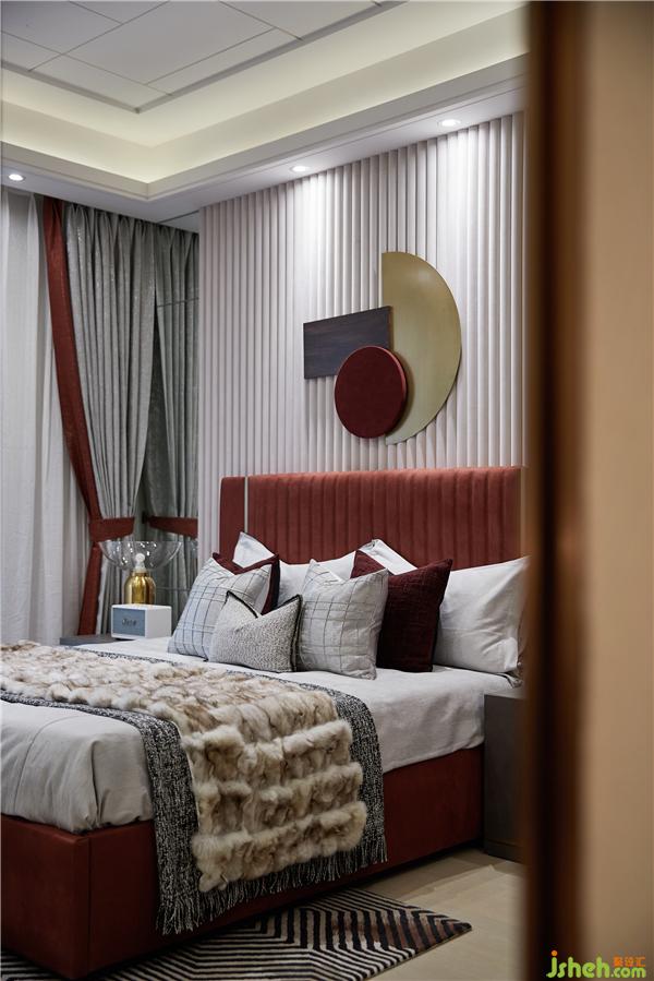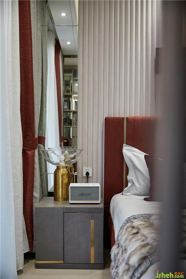 现代时尚的气息充斥于卧室空间,任何角度都有赏心悦目的视觉变化,丰富而不凌乱,任其飘散在居所的每一个角落,游离其中,让每一道棱角、每一道光线都衍生出一种高雅的美,安稳不乏遐想,静谧不乏灵动。