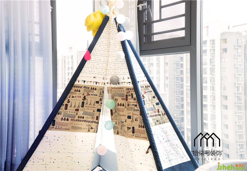 与其说是阳台,不如说是游乐的秘密基地。一张小帐篷,摆满喜爱的玩具,发着光的小球。看着窗外的风景,其乐融融。