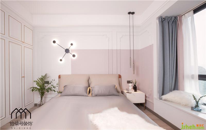 主卧渲染一个艺术氛围的环境,只需一面“L”型的色墙,加以小的摆件点缀,丰富空间的同时增添了自己喜欢的Style。