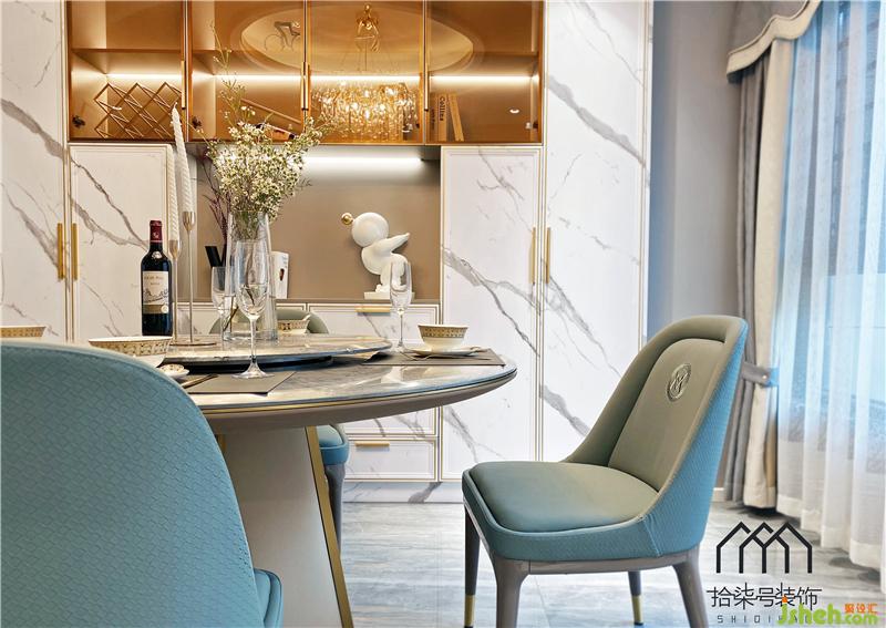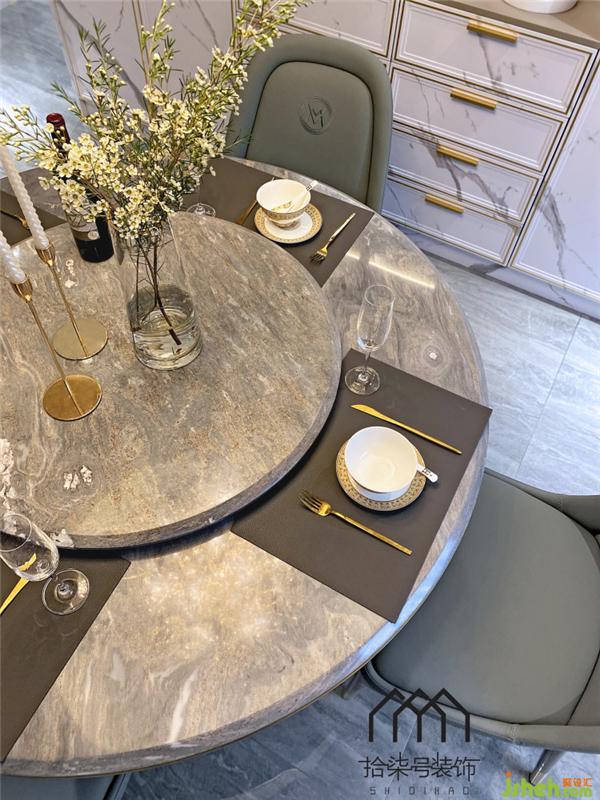 深灰绿的餐椅,与大理石的灰和谐相处。
