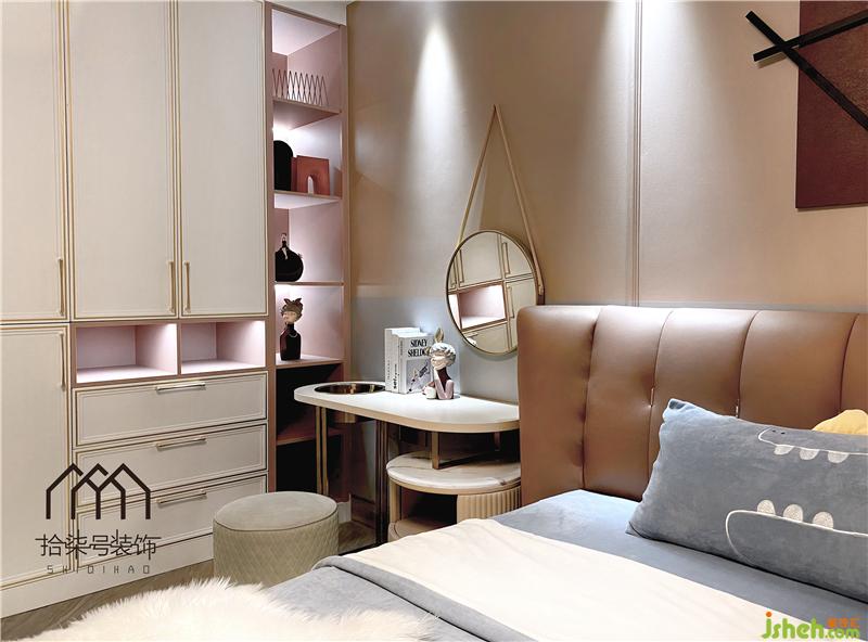 蓝粉色洋溢着童趣的活力,柳州装修设计开放格摆放可爱的摆件少女心满满。