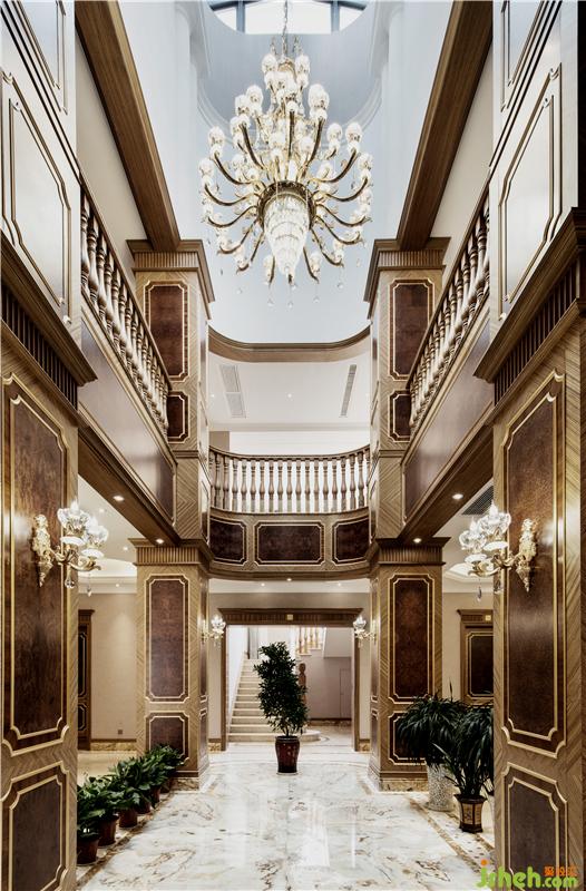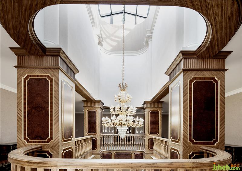 本案位于武汉汤逊湖畔,面积近千平方米,平面格局呈近乎严谨的轴线关系,业主希望拥有一个地道西式的宅子,而非市面泛滥的“伪欧”、“简欧”,对于自幼在汉口老租界长大的设计师,这似乎不是问题。设计师为这座宅子设计了一个令人惊艳的中庭,中庭四周的护墙板采用木皮手工镶嵌拼贴工艺,色调到位、尺寸精准,是设计师在自己的工坊亲自为业主打造,贵气而不浮夸,整个中庭面积不大,到玻璃天棚却有着近18米的垂直高度,使之成为整栋房子的“精神堡垒”、生活场景的中心。