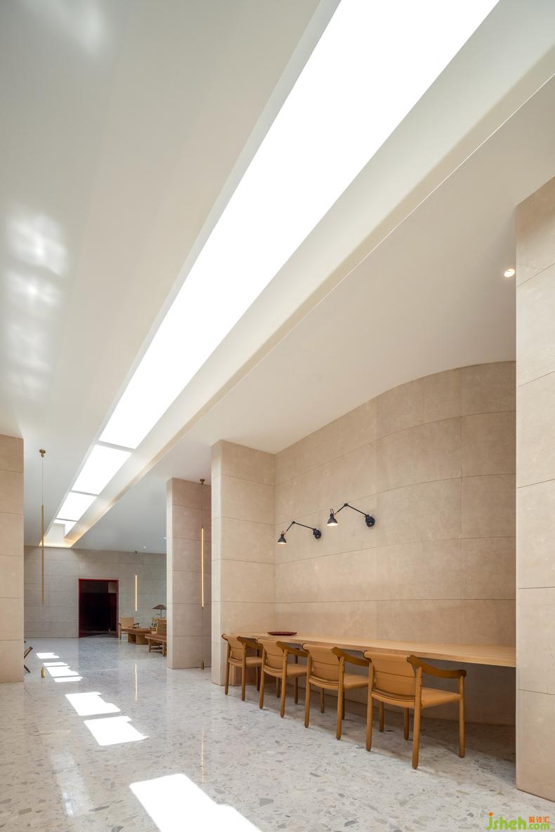 物的质地,在画中成为油彩堆叠的笔触,浓烈厚重、细致流转,描绘出单色的重量。艺术中心设计抽象主义创作的精髓在于透过色彩与量感,即便不是真正身处无垠荒漠,仍可升起苍茫而渺小的情怀,体现在建筑里,观者更能穿梭画中自由决定琢磨何处。