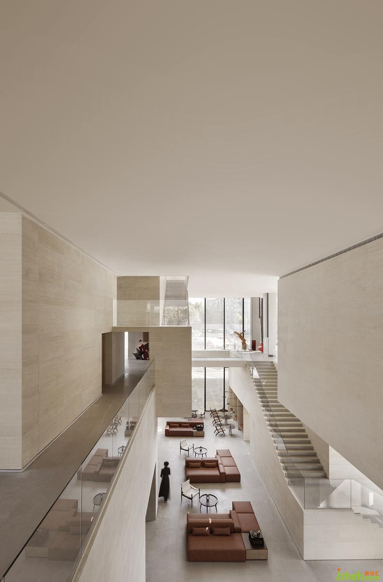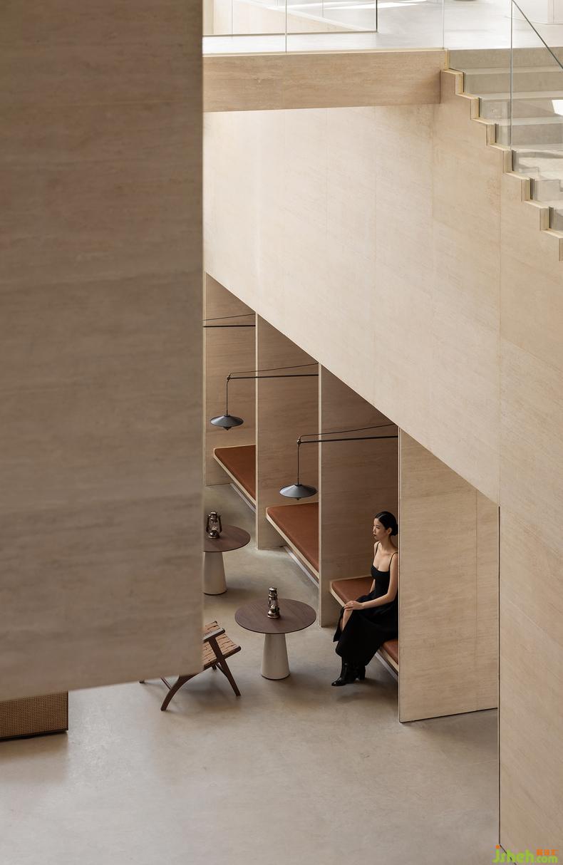 二楼架空的宽阔平台以阶梯作为观戏座位,眺望对向巨幅墙面投影或任一角落开启的行为艺术,打破传统表演/观赏的静态距离,藉由互动互望、演绎回味江滩人文情怀、深化城市灵魂。