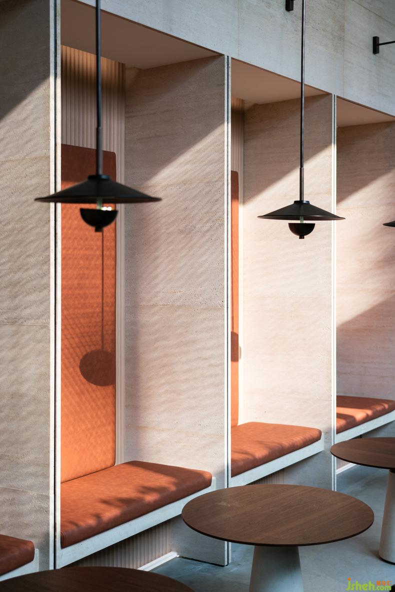 将戏码头概念融入建筑停顿点的转借手法,亦应用于材质选择。从前里分民居熟悉的砖墙屋瓦,我们改以俯角视之,节录这片城市记忆成垂直展开的壁面装置,藏在现代建筑量体的折痕中,等着与识得的人久别重逢。