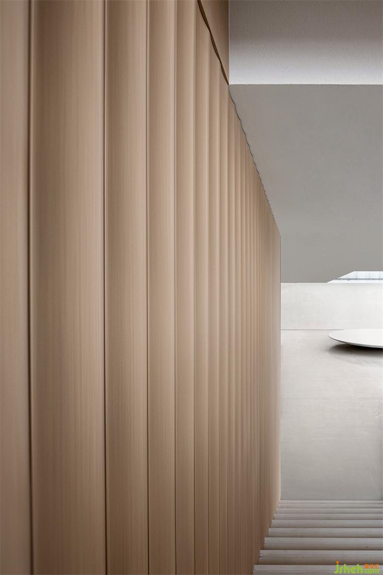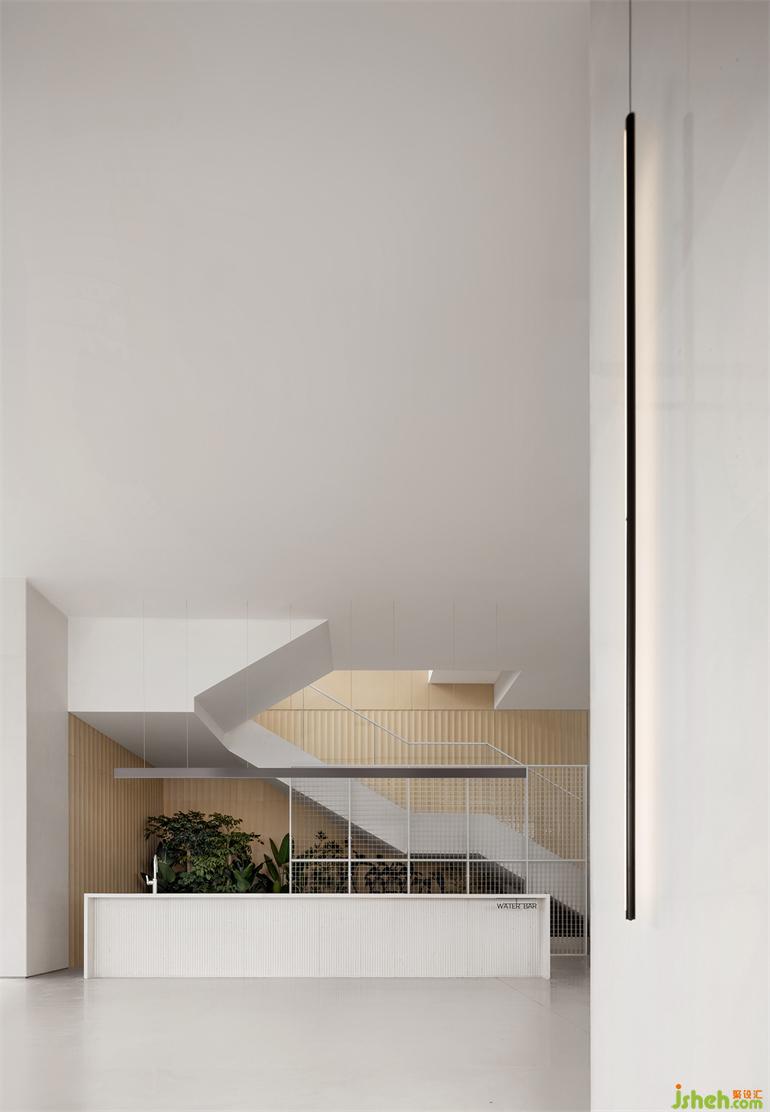 长时间的静态活动藏于量体内部,释放开阔场域给串接、流动的短暂行为,有别于格栅产生的网格影像,桥梁上的片刻动态是更锐利、穿透的,如此一幕幕层叠出景深。无论身处哪一事件场景,目光总会停在中央似长幅屏幕的格栅,售楼处设计节录一幕又一幕生活的段落,遗忘了起头、寻不着结尾。