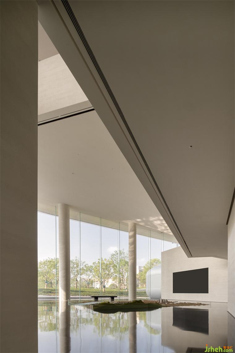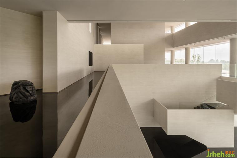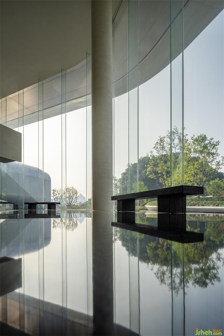 不以拟真填补感官是为了留予抒发自我的空白。装修设计在梯与梯的看台眺望全景,“湖上一回首,青山卷白云“的永恒辽阔对照个人渺小便悠然浮现。