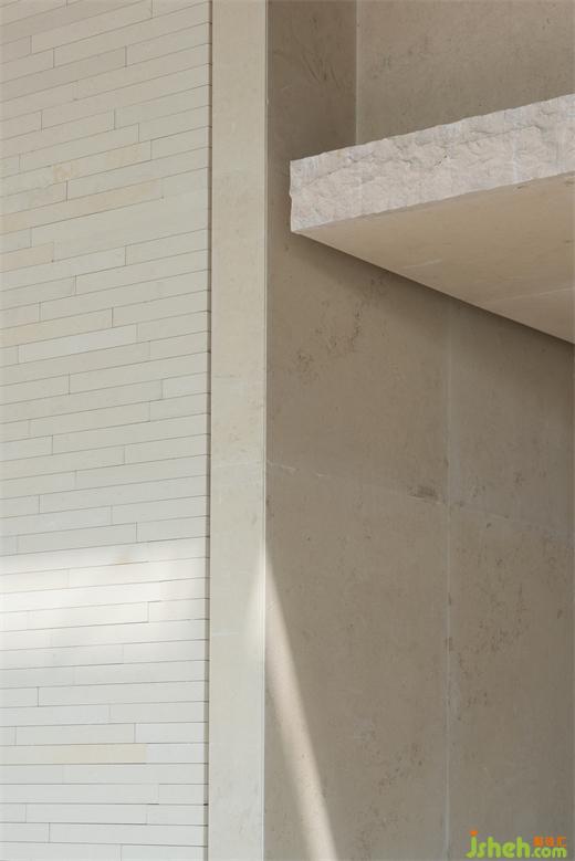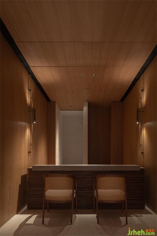 有别于水岸旁半开放空间,「日梦长廊」利用半封闭中庭与长廊结构,塑造压缩、释放、自然交错的对比节奏,为达此效果,体验馆装修设计先以量体扎实米白石材包覆空间路径,塑造层层框景的轴线起点。