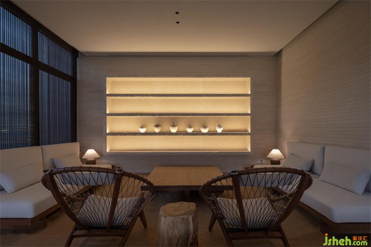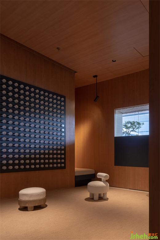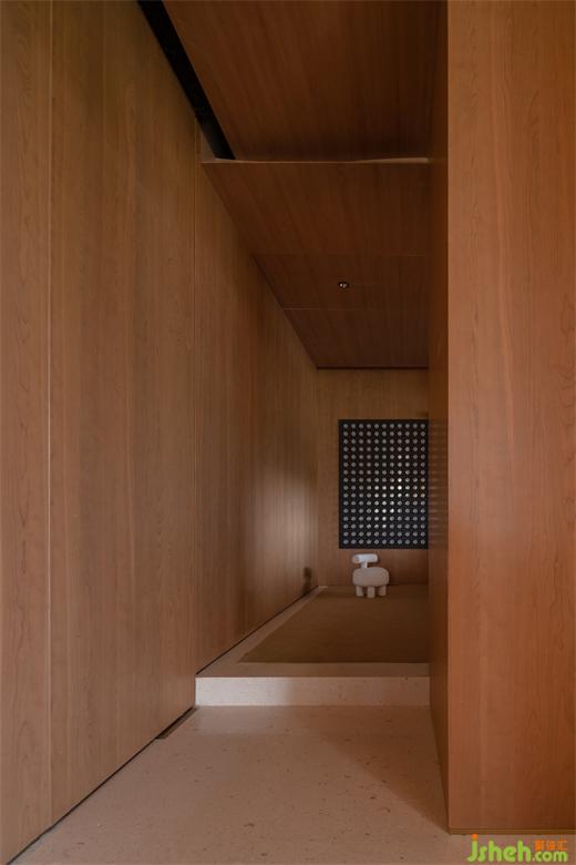 第二进利用侧面天井,削弱压迫感并引入漫射光,此区恰因邻道路而景观纷杂,体验馆装修设计正好借墙体屏蔽并增加空间安定感,再以侧向高窗、轴线尽头窗景塑造光影丰富层次。