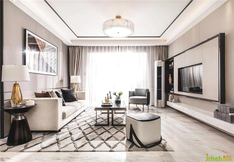 客厅通透明亮,大面积留白。简单线条与光源的作用下,整体空间更加舒适!