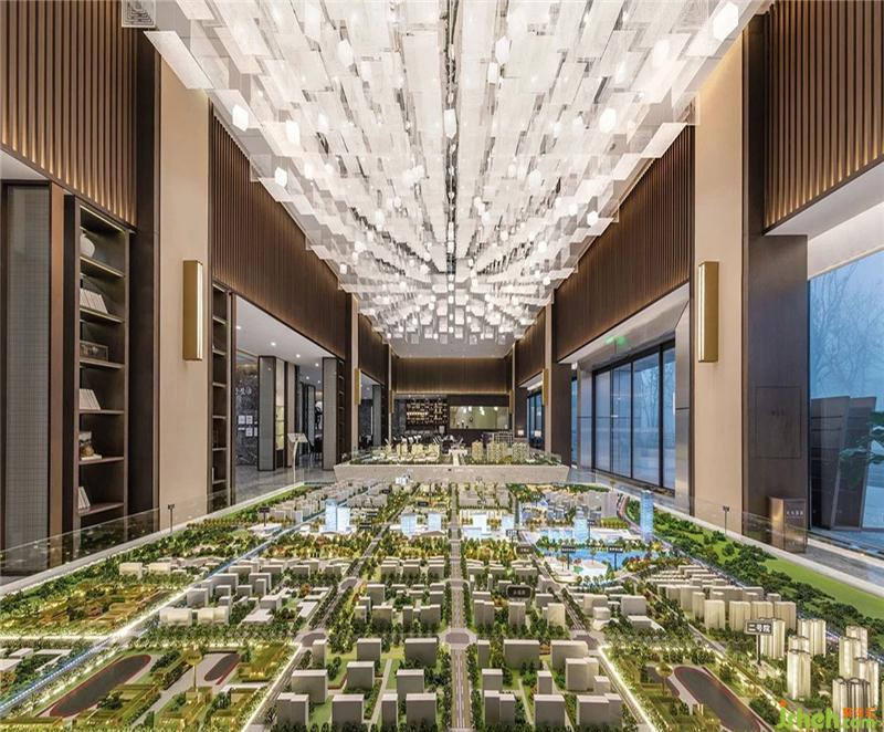 沙盘区做为营销中心的首要视觉冲击要素,大面积木质材料与软装吊灯的强劲表现力,磅礴大气,瞬间提升整个空间的品质感!