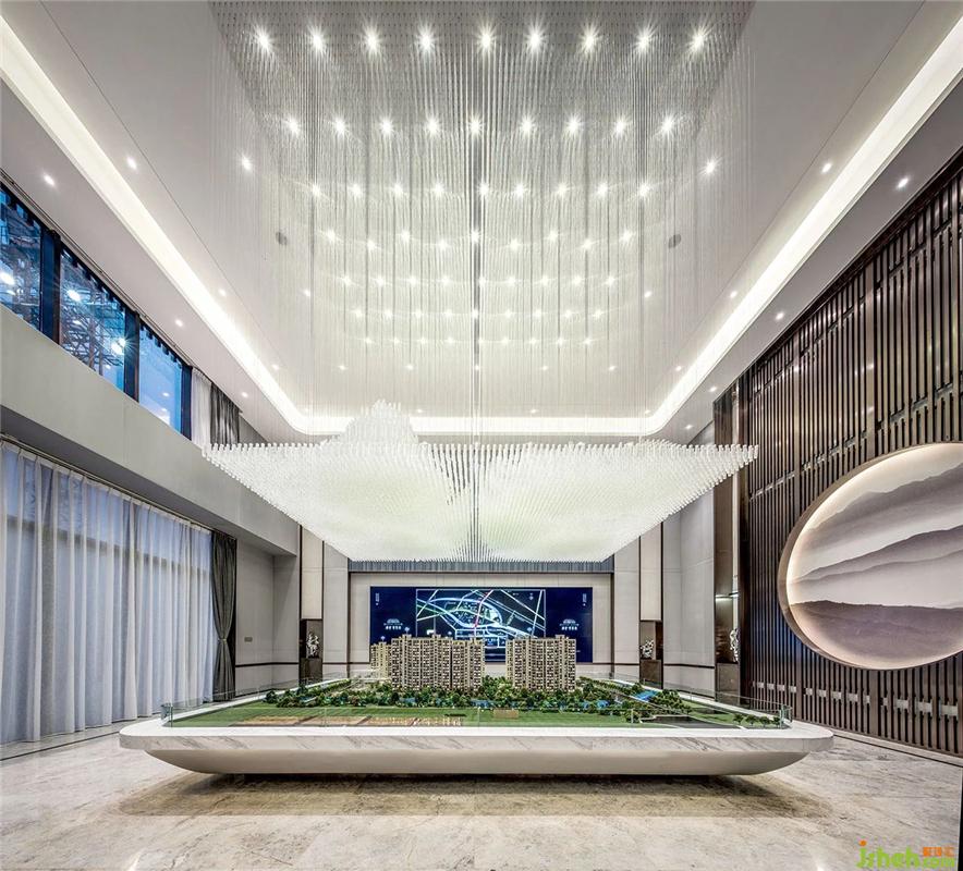 ▲整个沙盘区,山形水晶吊灯垂感十分强劲有力,瞬间将天花与地面紧密衔接......
