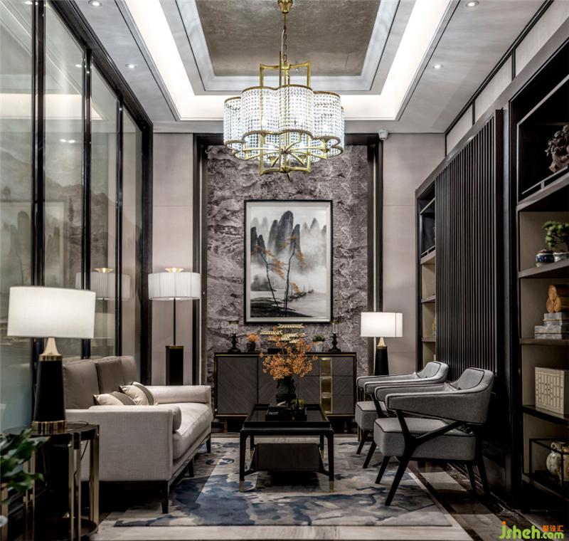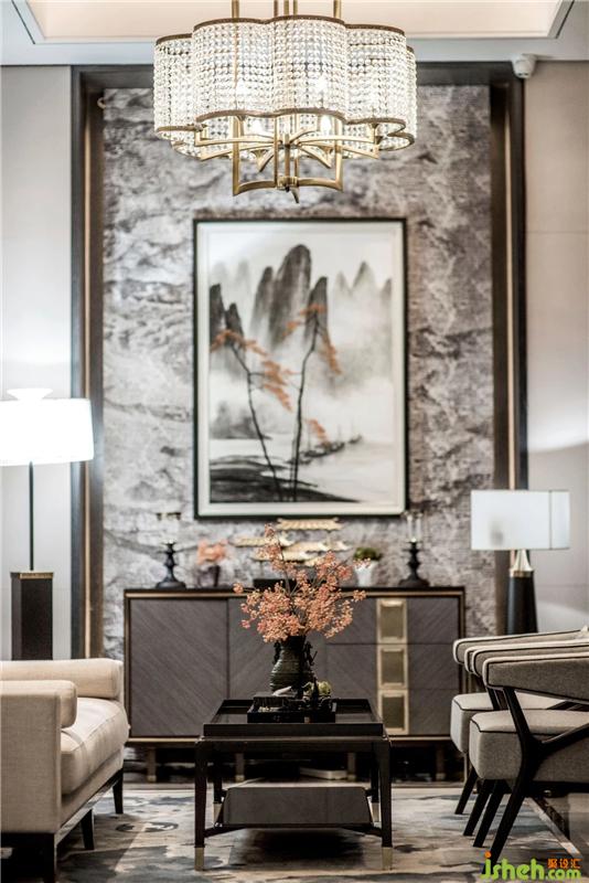 The living room is made of cool gray fabric sofa, chandeliers are filled with beige soft light, and lotus decorative ornaments... This case has an excellent aesthetic direction, and finds the proper role relationship in the state of interdependence of components and components. Art is the transmission of emotions!
