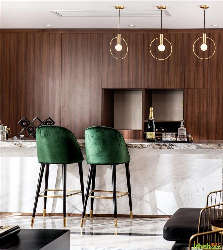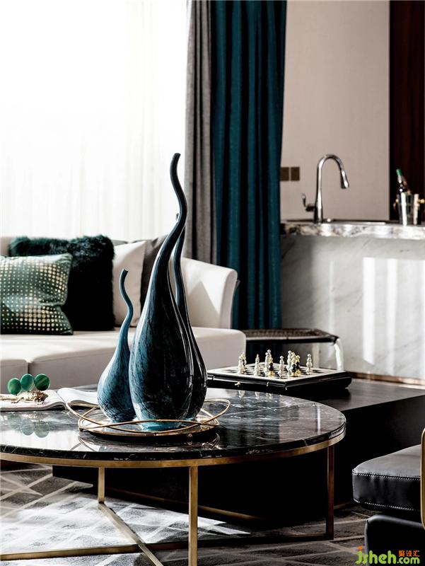 开放式客厅是创意溢出的环境化身,以高级灰打底,加以古典绿点缀,融合了时尚简约的家具款式,营造出轻盈、时尚的视觉效果。