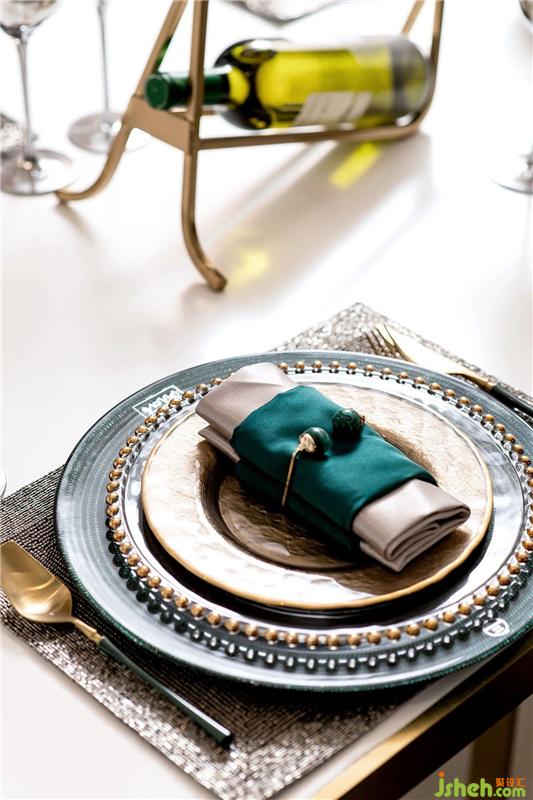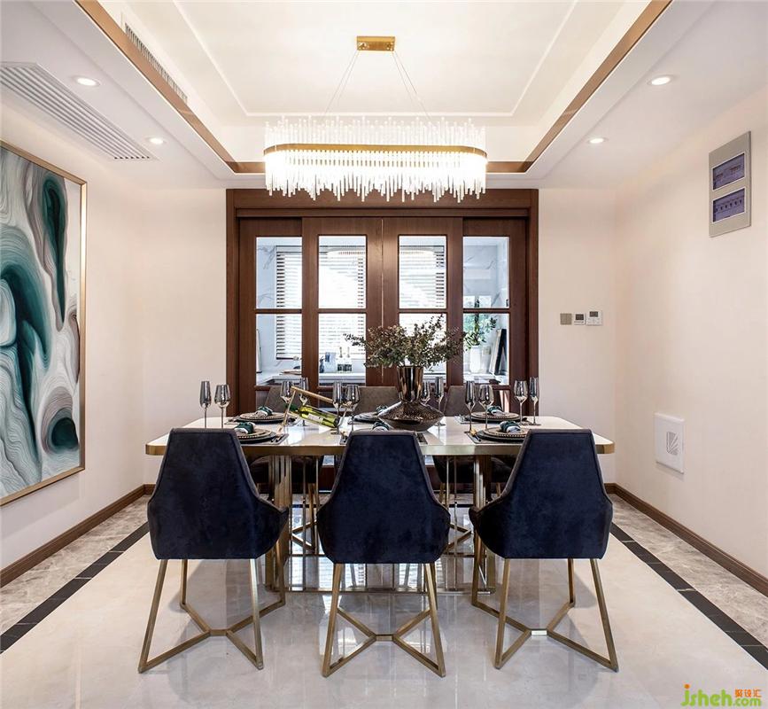 金属脚布椅、别致的挂画及餐具,为空间增添了更多趣味的元素。餐厅被塑造成一种轻奢,雅致的空间感受,落笔之处让人怦然心动且值得回味......