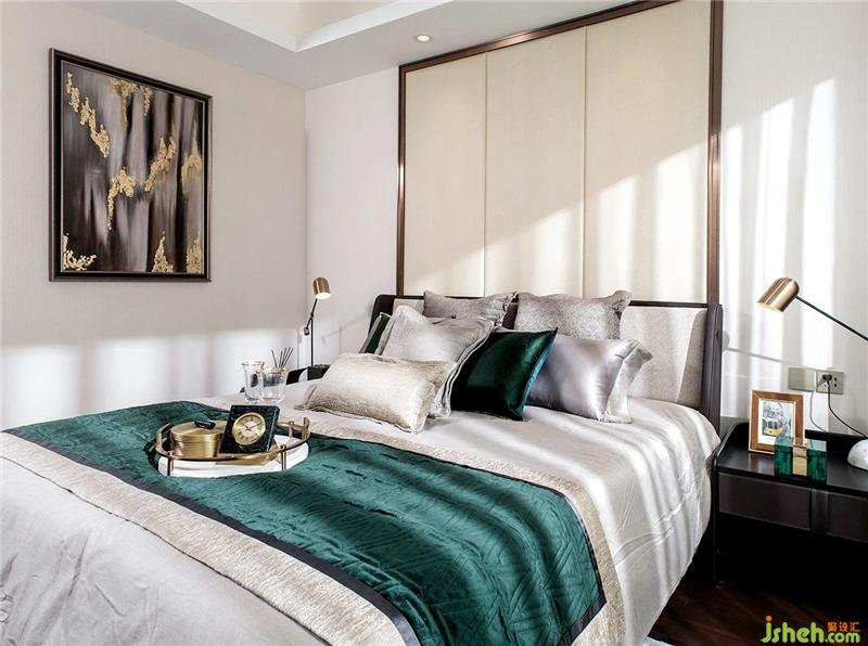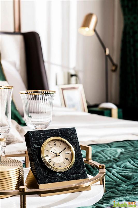 The bedroom is inspired by the cyan tones of the Xi'an City Wall, which is refined in classical green and rendered extremely intense in space. With white as the background, green as the auxiliary color, partial golden embellishment, the color is calm and elegant, and the space is natural and quiet.