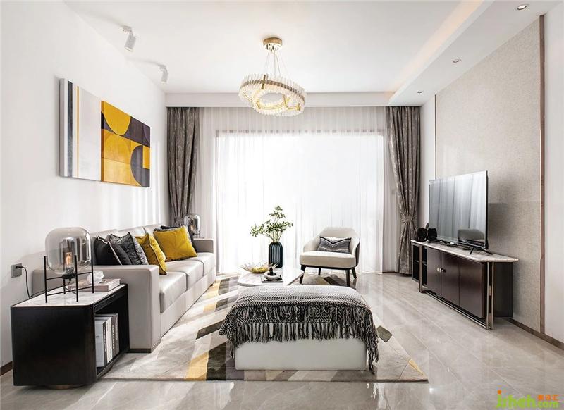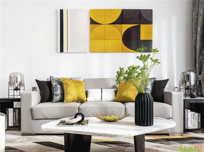 本案以灰色米色与轻快的黄色调为主色调,营造出简约、舒适、温馨的室内生活空间。黄色作为空间点缀色,传递出一种轻松、惬意的氛围。