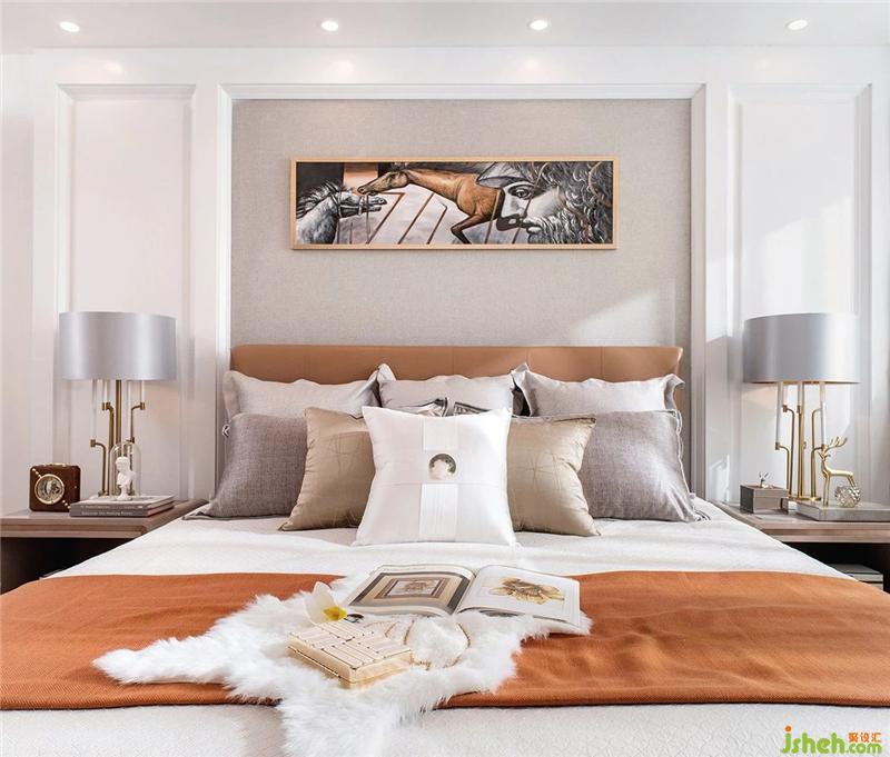 The lines of the bedroom tend to be low-key, affecting the elegant complex of immersive heart, adding orange to the jump, and the combination of crystal enhances the texture of the whole space, luxury and elegance, and the taste of fashion.